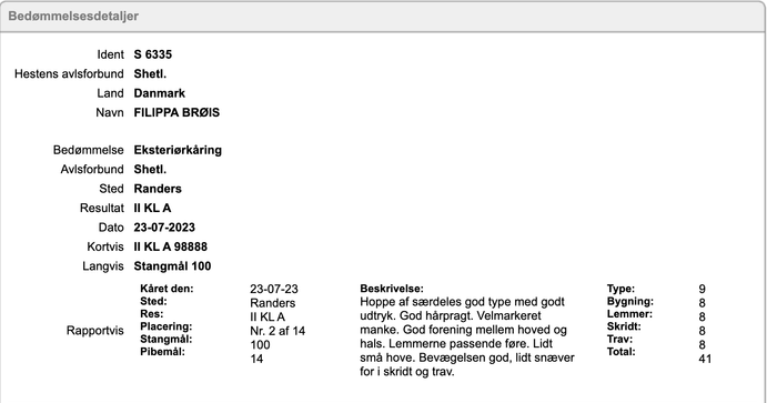 Hurup føl og plagskue | 99888/42 point og ærespræmie | |